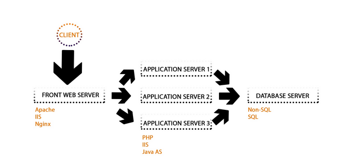 The most popular Web Servers support balancing based on Round Robin. This is the simplest scenario. Along with the Round Robin algorithm, many alternative algorithms are provided by Web Servers. This allows you to pass a request to multiple IP addresses of Application Web Servers inside the cluster. This sample architecture is shown in the next diagram.