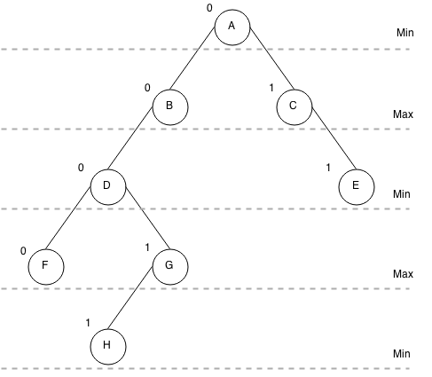If we set the first nodes state as min, next level nodes must be the max, after that level, min and so on.